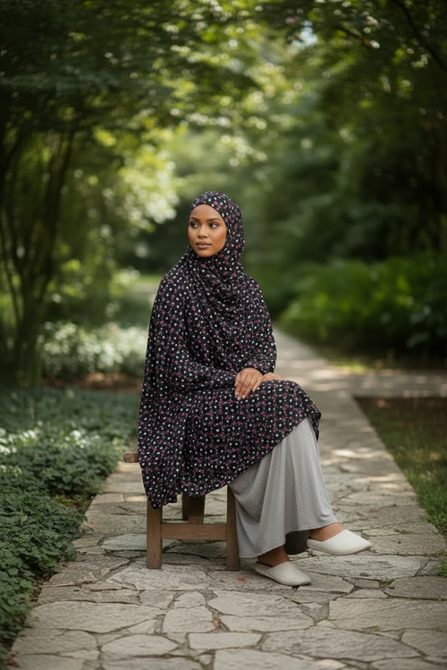 Semi-Long handmade Khimar Hijab with Niqab Lightweight Breathable Islamic Prayer Outfit